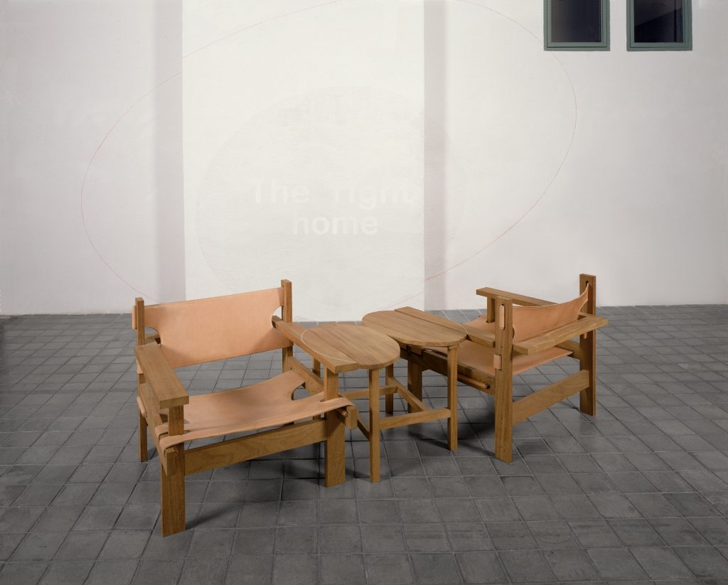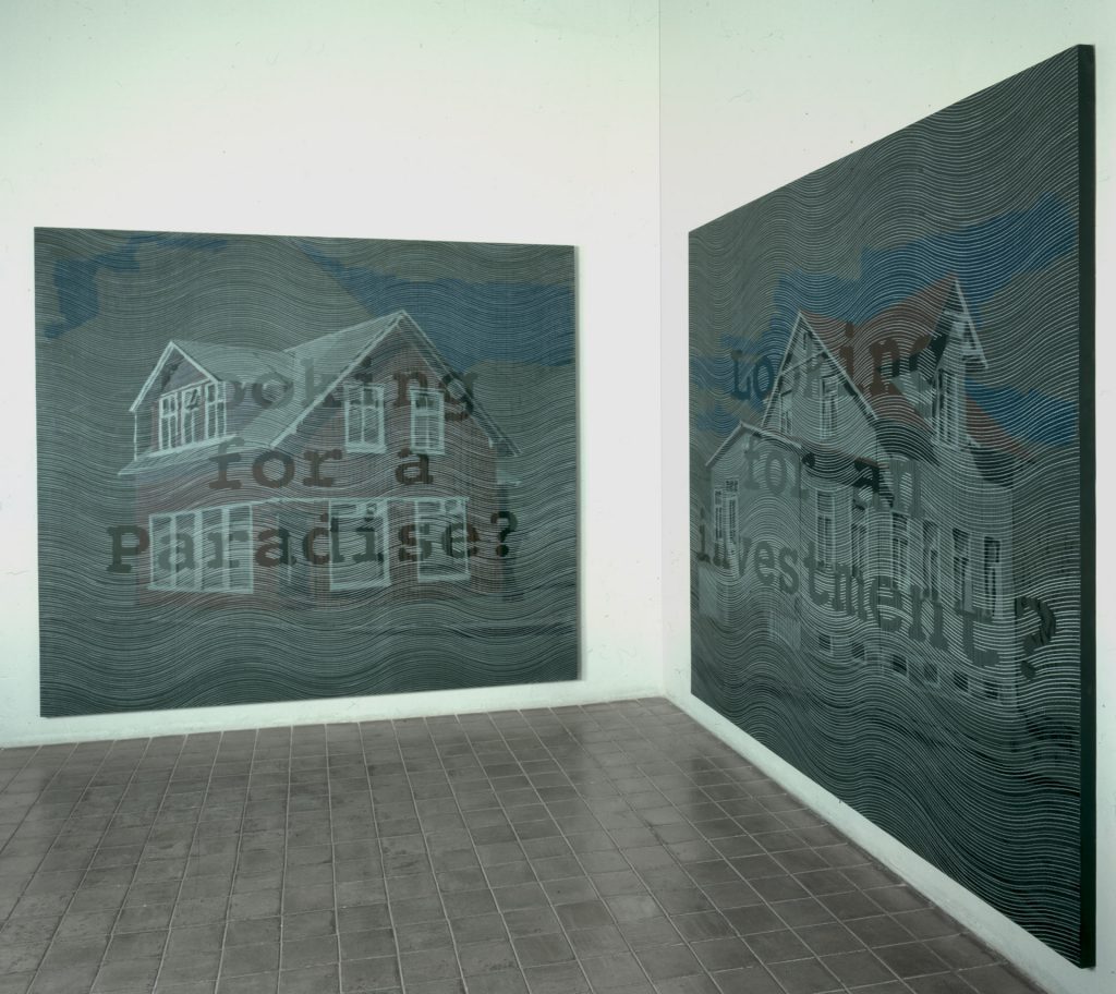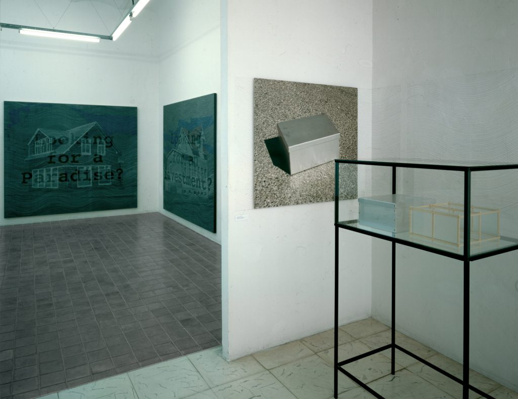“The improbable city” exhibition is a lateral and subjective reflection on the problems faced by our cities. Based on a sign written on the Wall of Copenhagen Airport: Best prices for all passengers, Best price means 20% below city prices, a process of reflection opens up on the relationship existing between economic processes and the way in which cities are formed. The exhibition, made up of paintings, furniture, models and photographs, suggests an idyllic vision of moments in the city. Texts are introduced which have been taken from estate agents, slogans, advertisements, marketing and which make reference to the buying-selling processes and other commercial mechanisms.