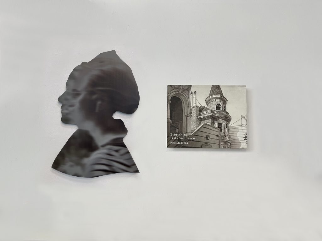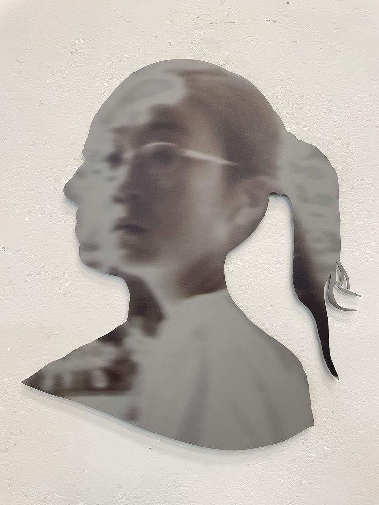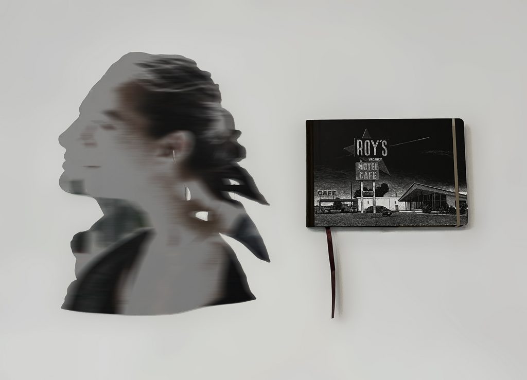 Faces & Books Series, 2023. 8 photographs with direct printing on iron and eight books. Variable dimensions.