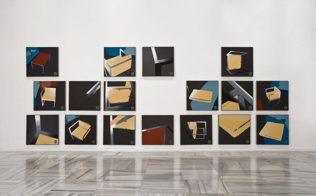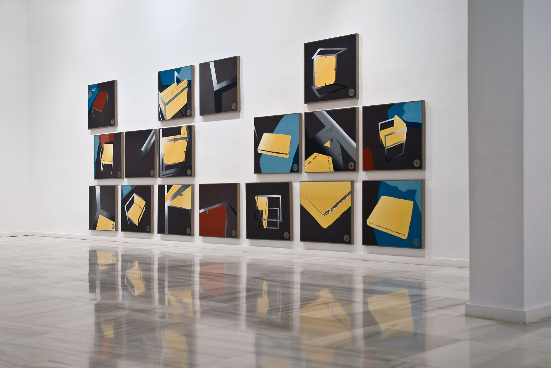 Manual de instrucciones, 2009. 17 cuadros. Óleo sobre lienzo 75 x 70 cm (x 17)