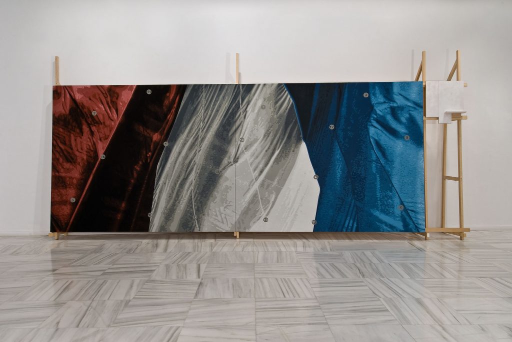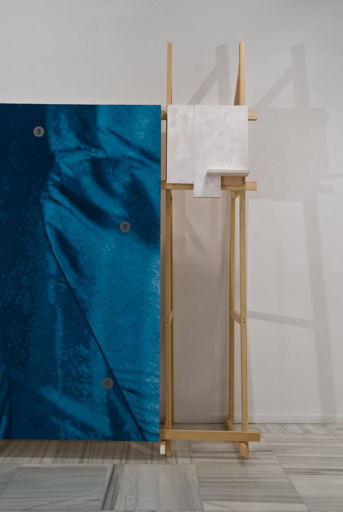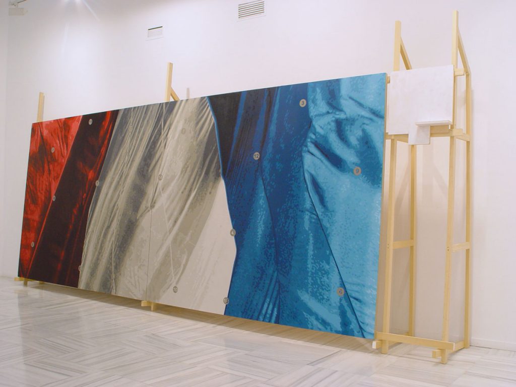 El símbolo, 2009. Óleo sobre lienzo y estructura de madera cuadro de 680 x 250 cm sobre estructura de madera de 310 x 680 x 85 cm