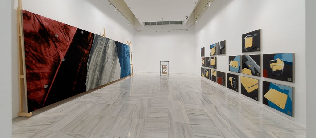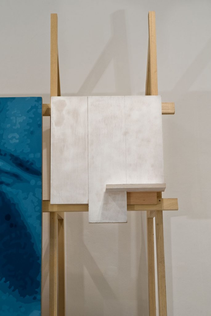 Detalles El símbolo, 2009. Óleo sobre lienzo y estructura de madera cuadro de 680 x 250 cm sobre estructura de madera de 310 x 680 x 85 cm