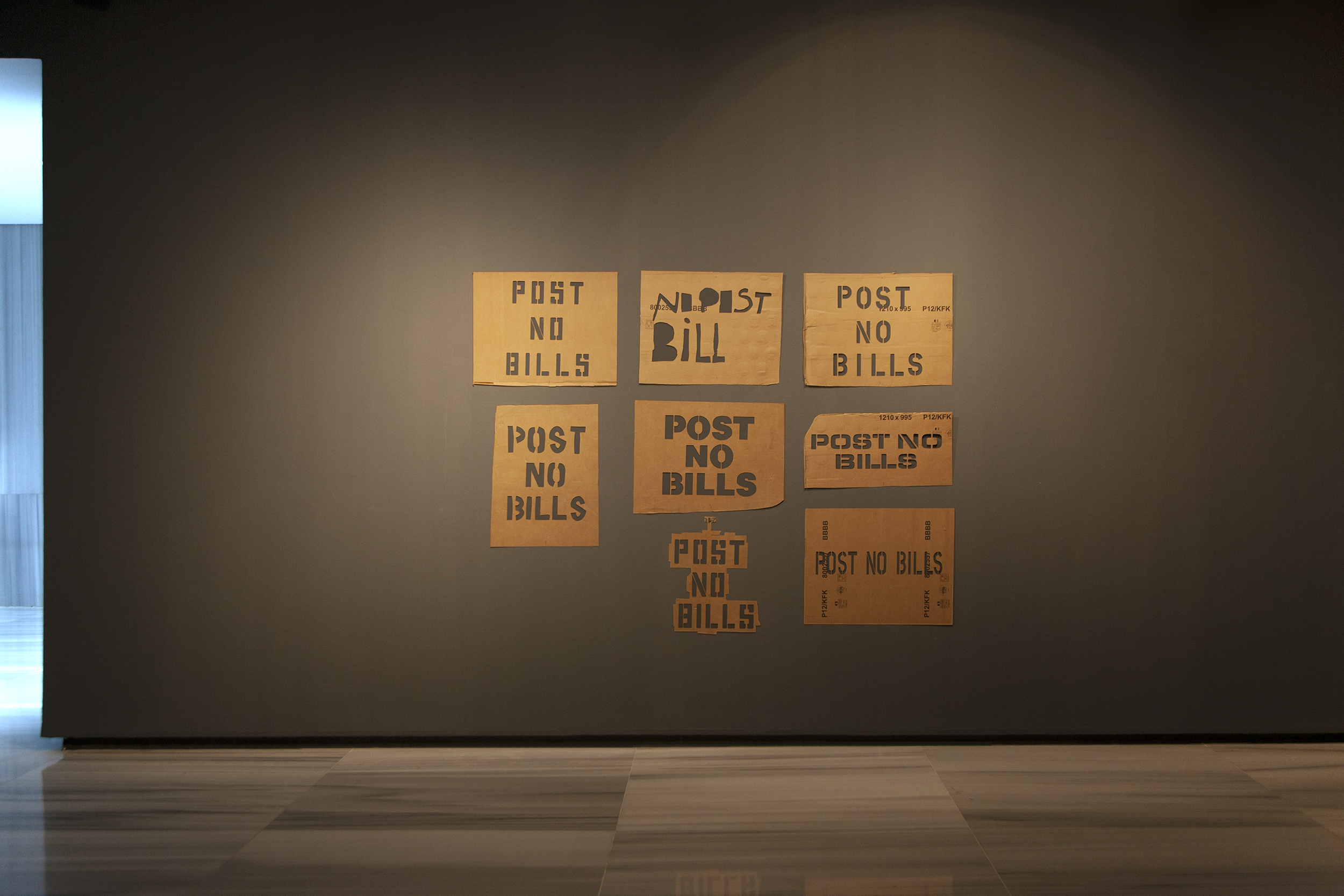 The images document the interventions carried out in different walls of works of the city of New York. It is normal for the walls of the works to be painted in a dark colour that is almost always green. The tradition is to paint with white spray and in a repetitive way the phrase: Post no bills. For days we toured the streets of Brooklyn and Queens, locating the walls that were erected to protect new building constructions. As an anonymous and absurd service, we went ahead and executed the work always with different templates that we had previously cut manually or with laser in 3mm grey cardboard. The series is not finished.