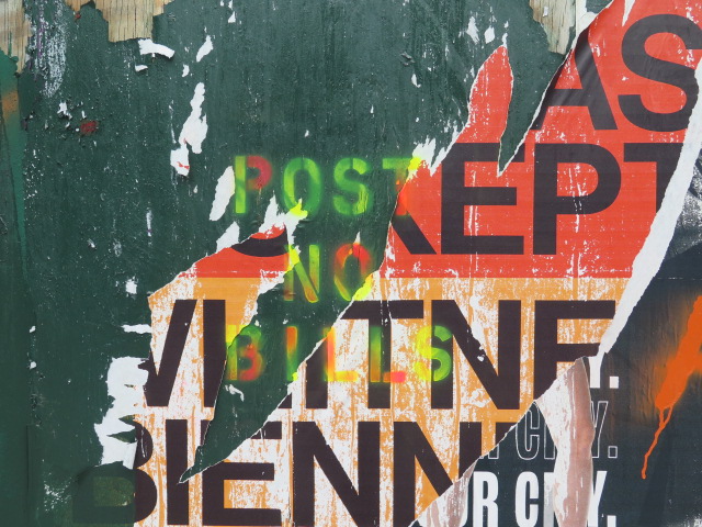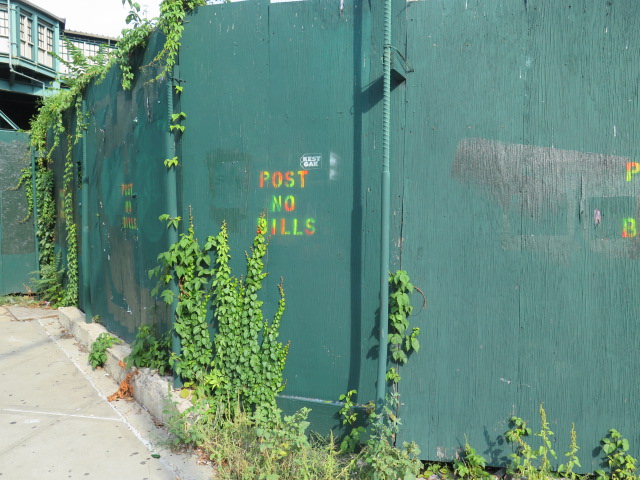 Las imágenes documentan las intervenciones realizadas en distintos muros de obras de la ciudad de New York. Es norma que las paredes de las obras se pinten de un color oscuro que casi siempre es verde. La tradición es pintar a continuación con spray blanco y de manera repetitiva la frase: Prohibido Fijar Carteles. Durante días recorrimos las calles de Brooklyn y Queens, localizando los muros que se levantaban para proteger las nuevas construcciones de edificios. Como un servicio anónimo y absurdo, nos adelantábamos y ejecutábamos el trabajo siempre con plantillas diferentes que previamente habíamos cortado manualmente o con laser en cartón gris de 3mm. La serie no ha terminado.